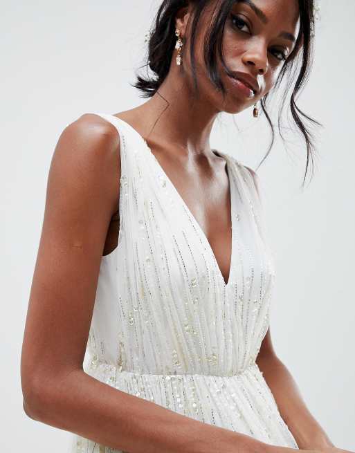 Asos Edition Waterfall Sequin Midi Wedding Dress Asos