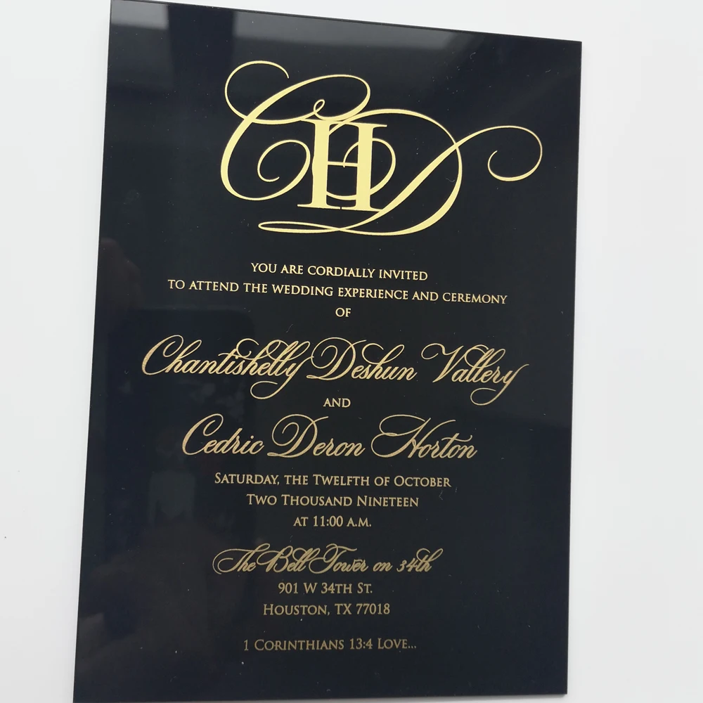 Black Acrylic Card With Gold Foil Letters Free Name Logo Cards