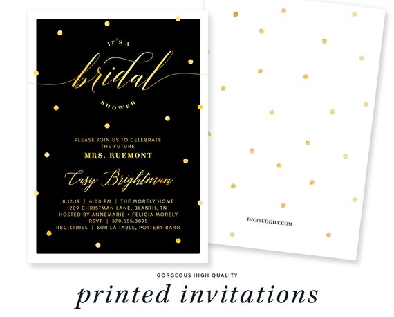 Black Gold Bridal Shower Invitation Gold Dots Modern Calligraphy