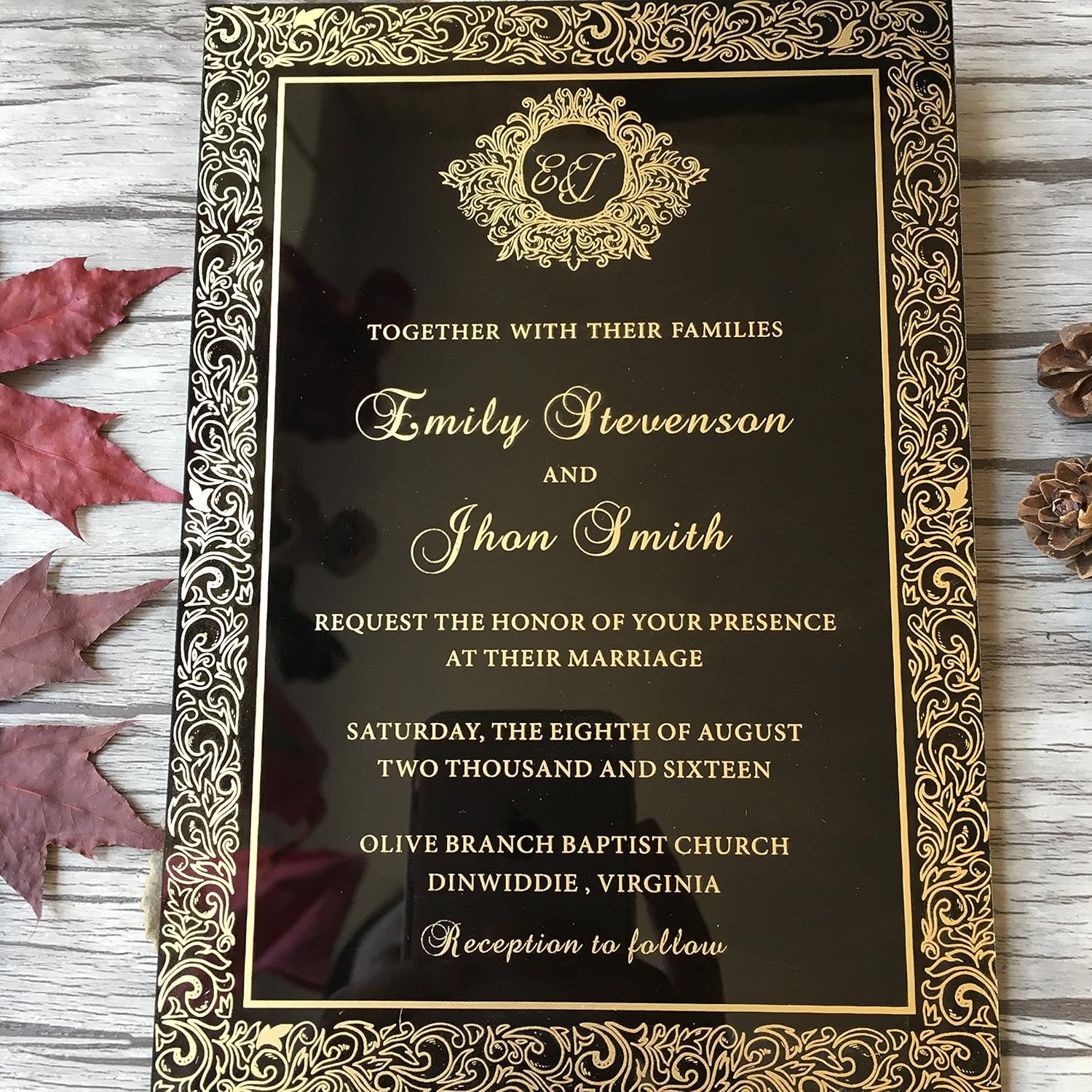 Elegant Black Wedding Invitation With Gold Letters Wedding