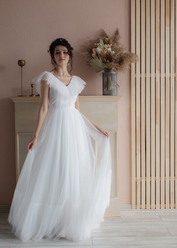 Sale Modern Wedding Gown White Tulle Open Back Ready To Etsy