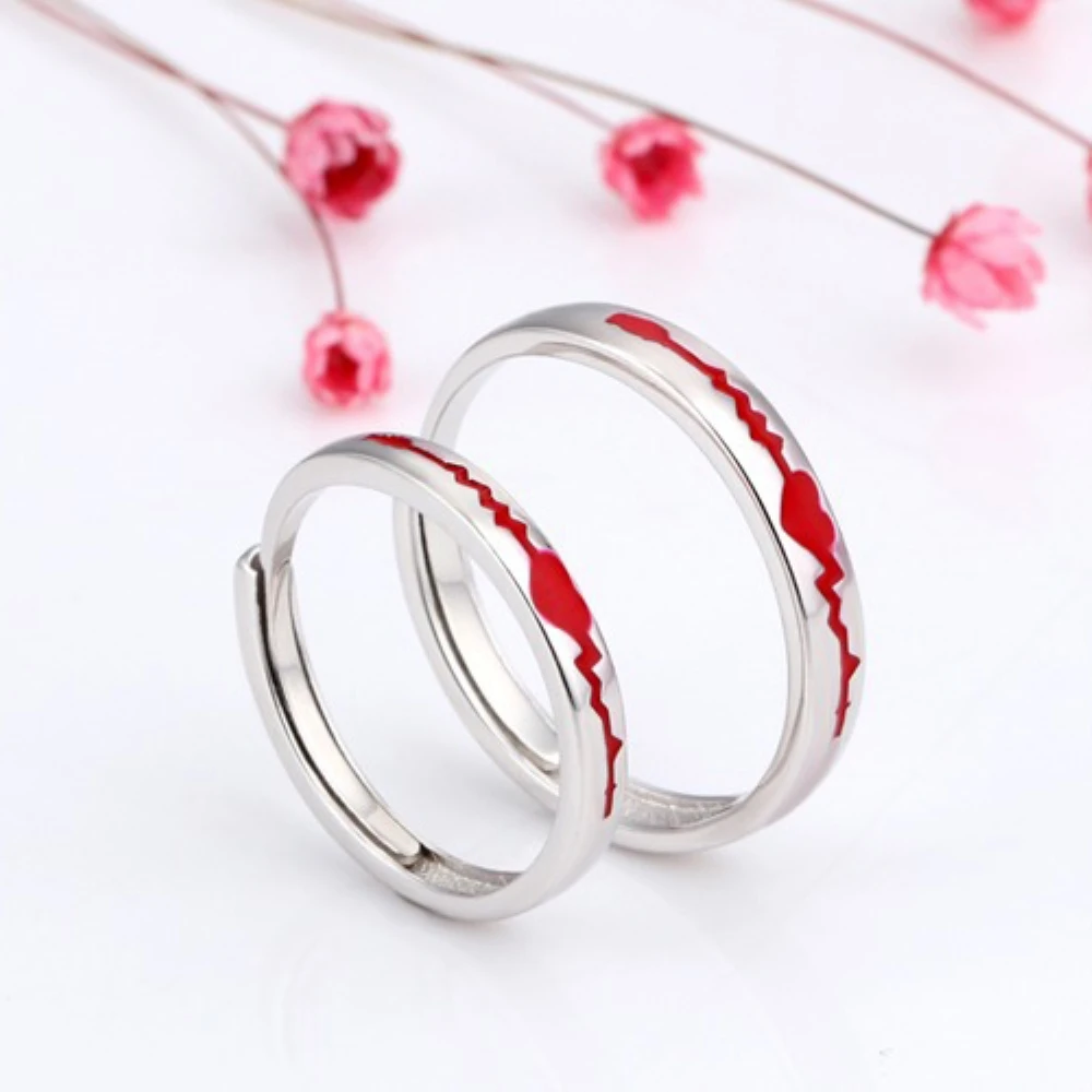 925 Sterling Silver Red Heartbeat Ekg Couple Promise Ring