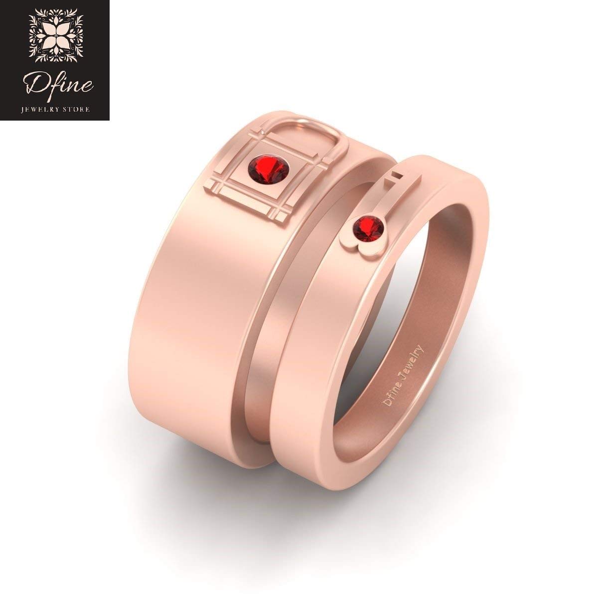 Red Diamond Lock And Key Wedding Ring Set His And Hers Matching