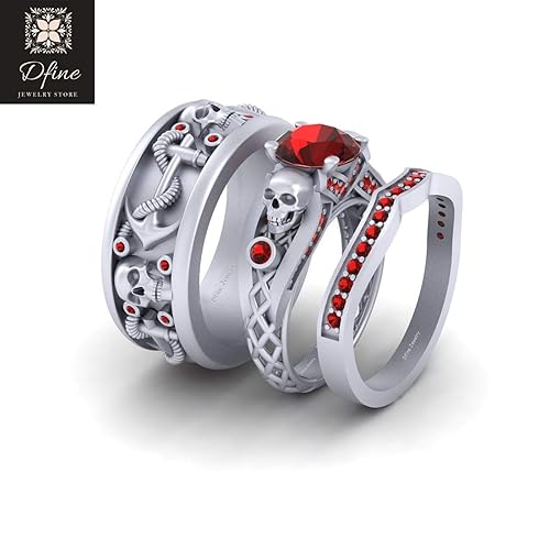 Amazon Com His And Her Matching Skull Engagement Ring Set His And
