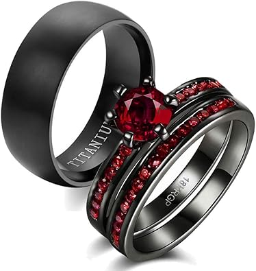 Black Gp 925 Silver Red Garnet His Her Matching Band Engagement