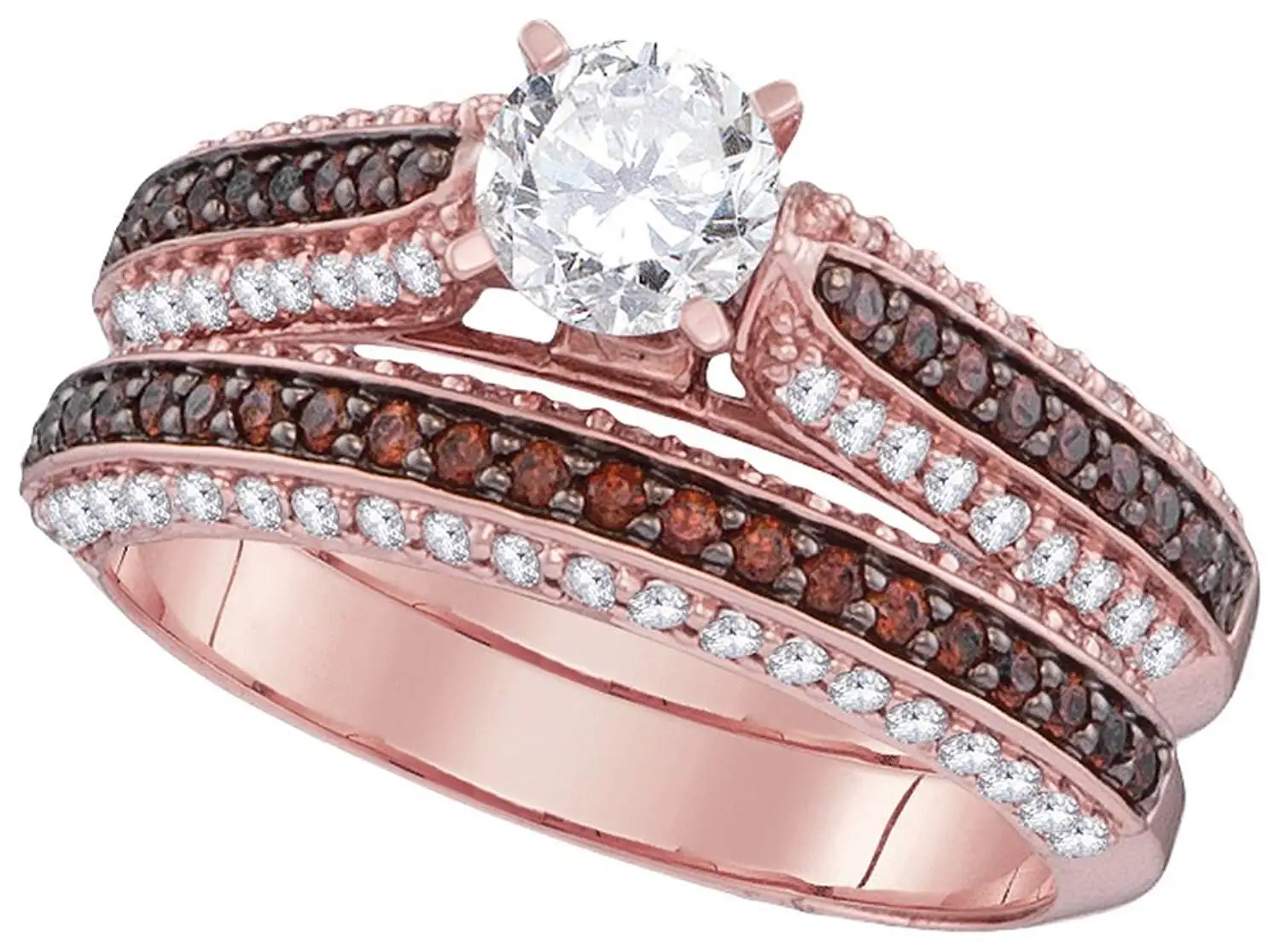 Buy Solid 10k Rose Gold Round White And Red Diamond Bridal