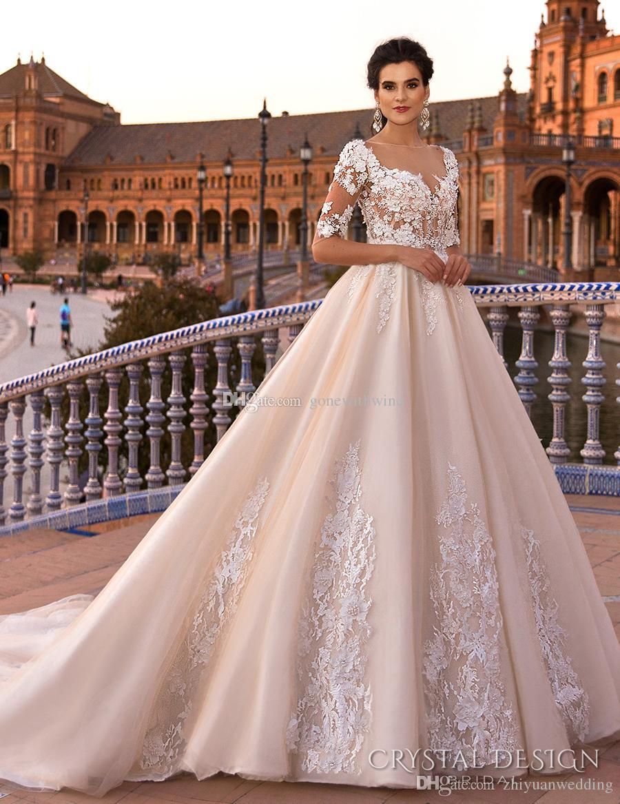 Vintage Design Royal Princess Wedding Dreses Long Sleeve Crystals