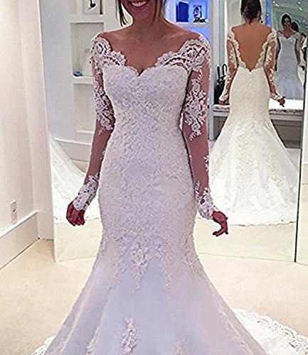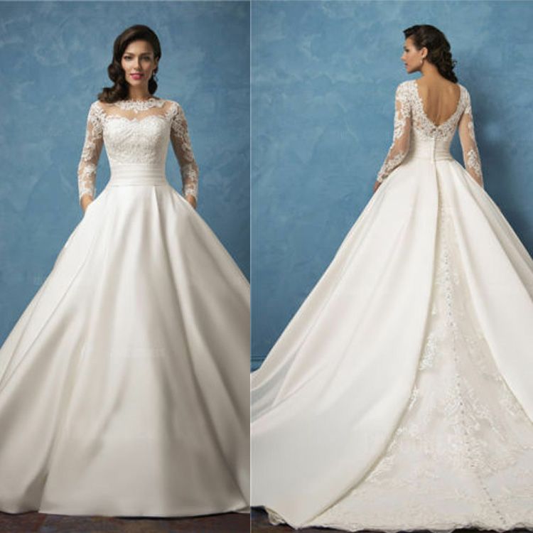 Beauty Bridal V Back Satin Lace Wedding Dresses With Long Sleeves