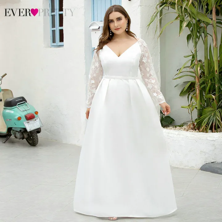 J Plus Size White Wedding Dresses Ever Pretty Ep00707wh A Line V