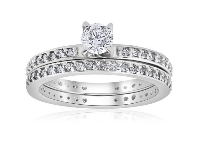 Diamond Engagement Wedding Ring Set 14k White Gold Pave Thin