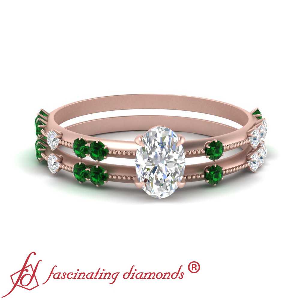 1 Carat Oval Shaped Diamond And Emerald Gemstone Vintage Thin