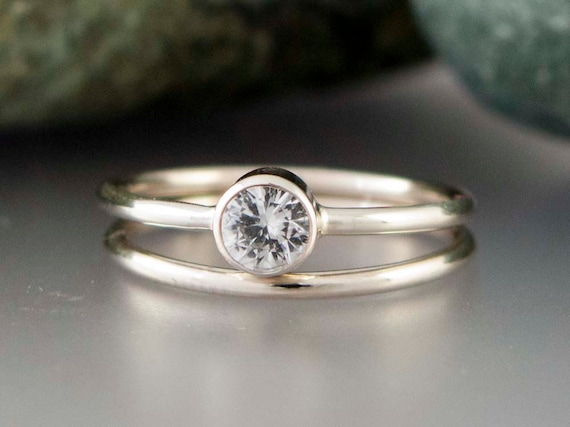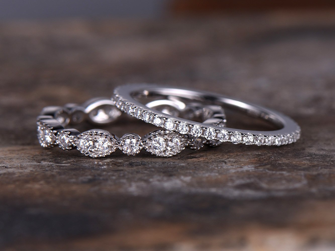 14k White Gold And Moissanite Wedding Ring Set Thin Etsy