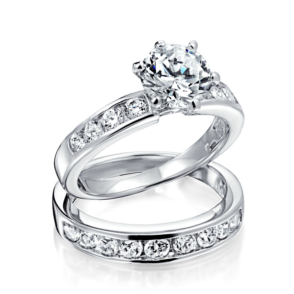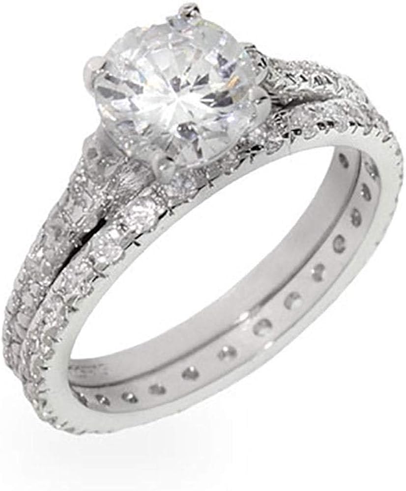Amazon Com 2pcs Full Eternity Wedding Ring Set 925 Sterling
