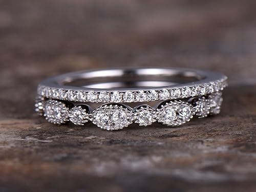 Amazon Com 2pcs Wedding Ring Set 925 Sterling Silver Half