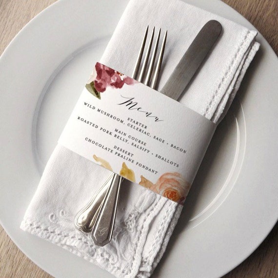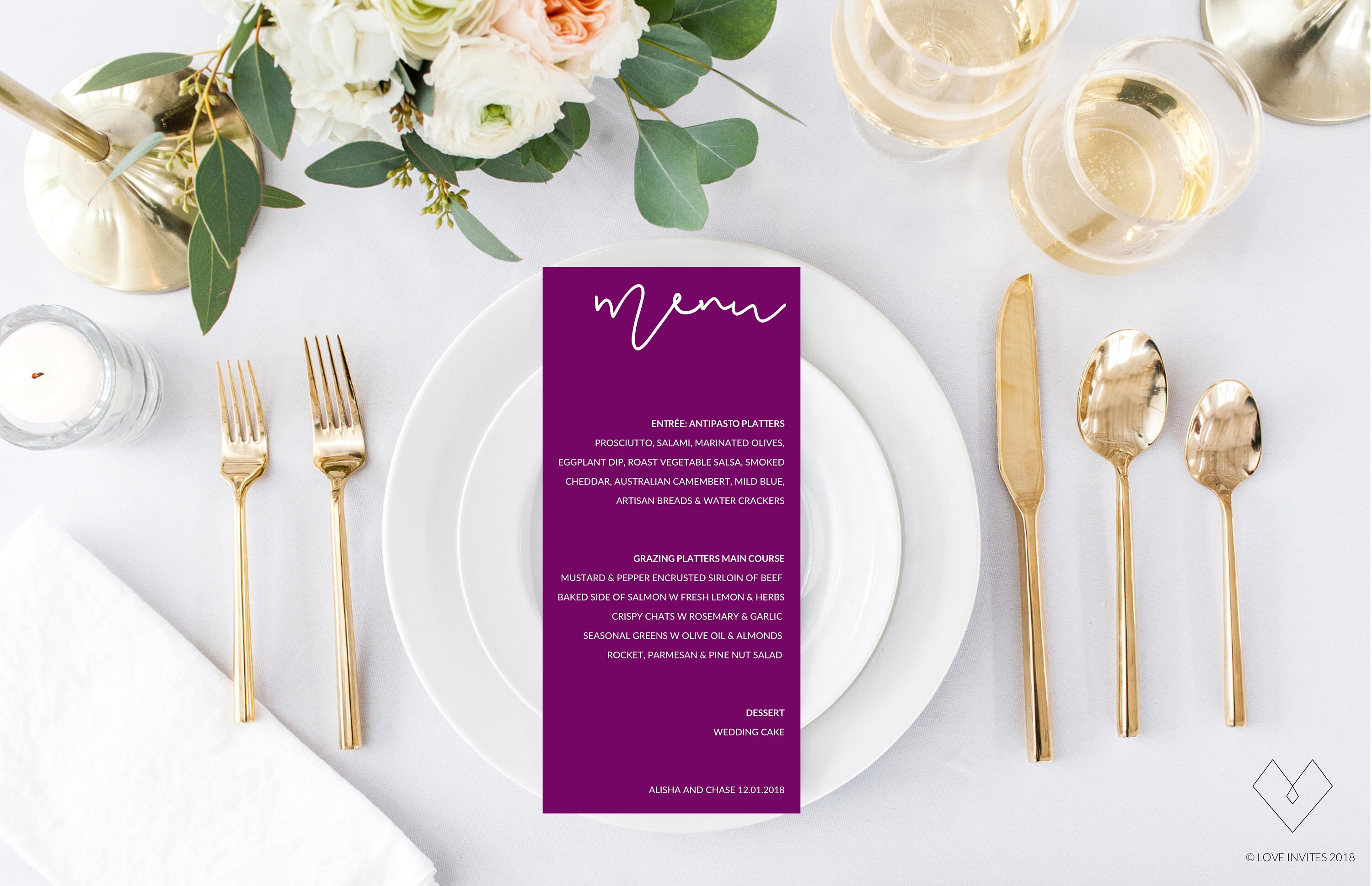 Wedding Menu Diy Design Vistaprint Folded In Napkin For Security From Wind Gold Rimmed Large Plate Inst Marinated Mushrooms Pickled Onions Stuffed Mushrooms