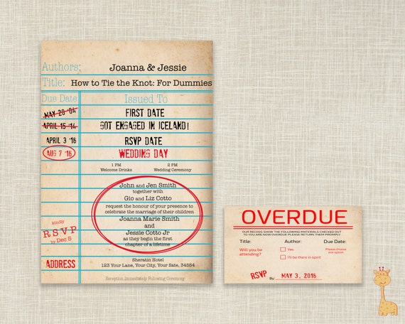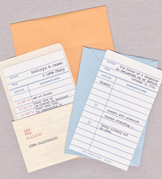 Library Wedding Date Due Check Out Card Invitations With Rsvp Etsy