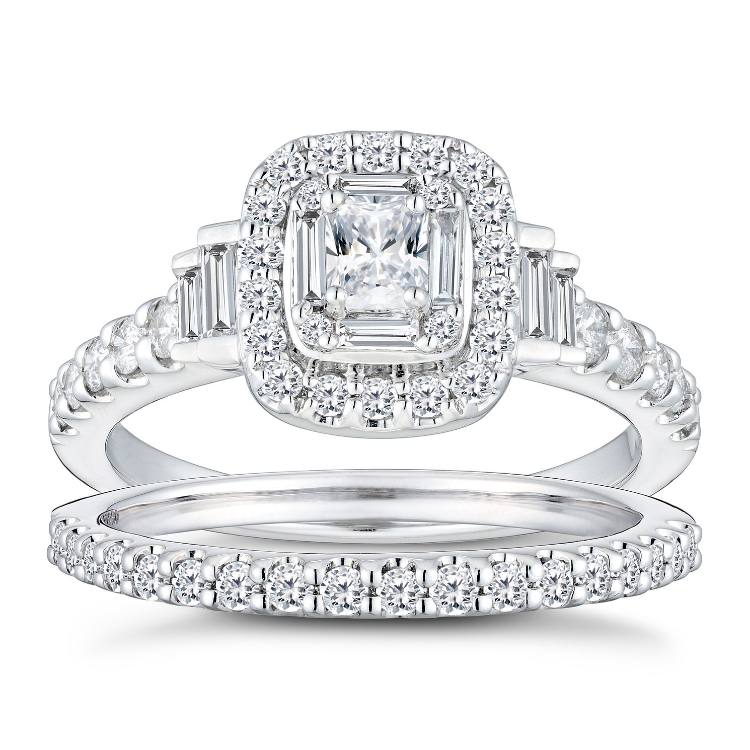 Platinum 1ct Diamond Radiant Baguette Bridal Ring Set Ernest Jones