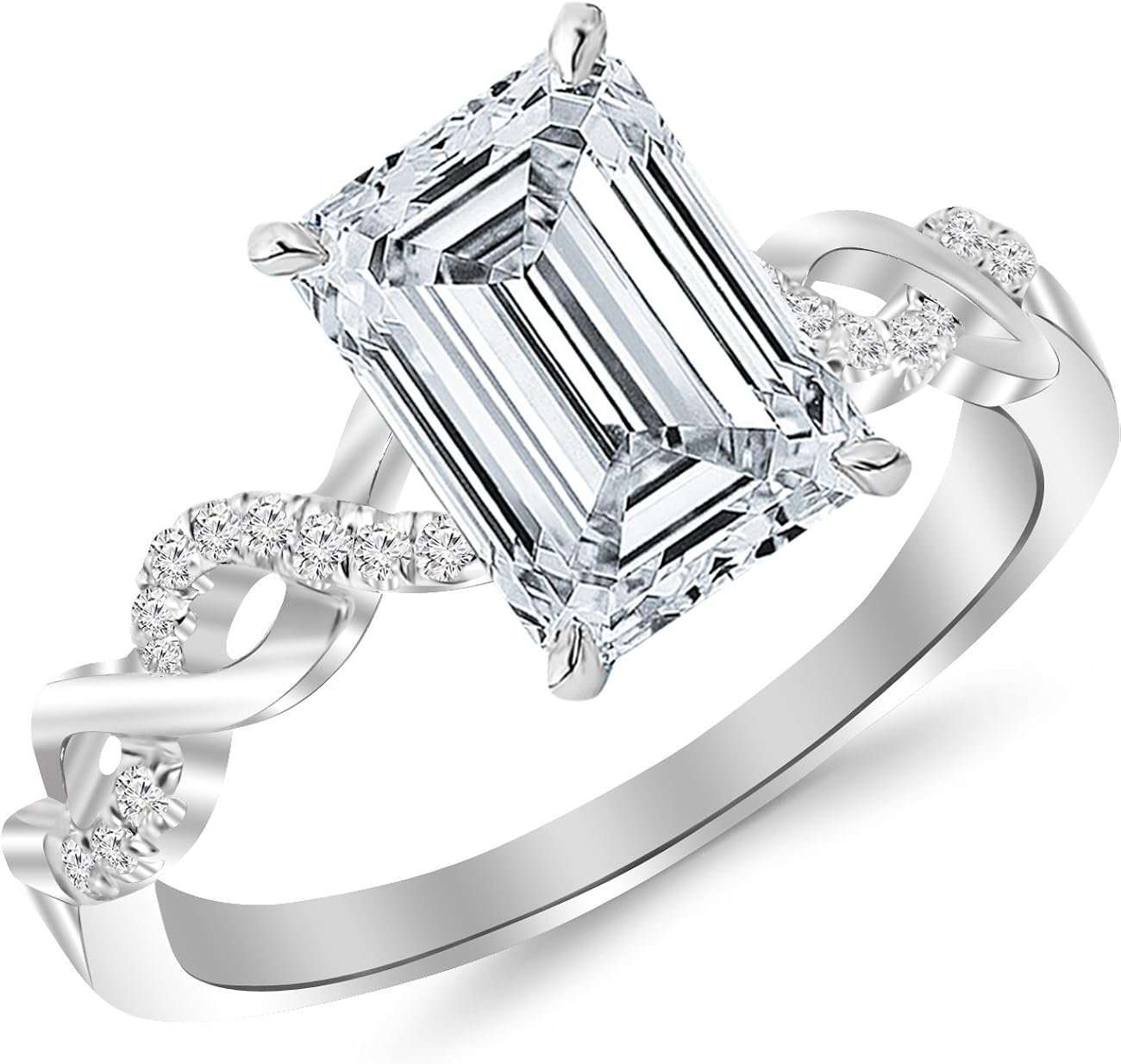 Twisted Accented Emerald Cut Engagement Ring Engagement Rings