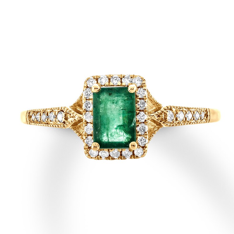 Natural Emerald Ring 1 8 Ct Tw Diamonds 10k Yellow Gold Womens