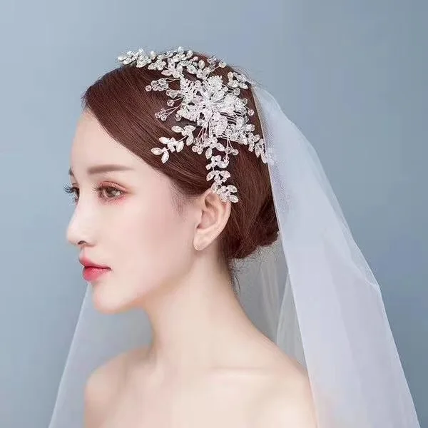Luxury Silver Metal Korean Pearl Wedding Tiaras Bridal Comb Hair